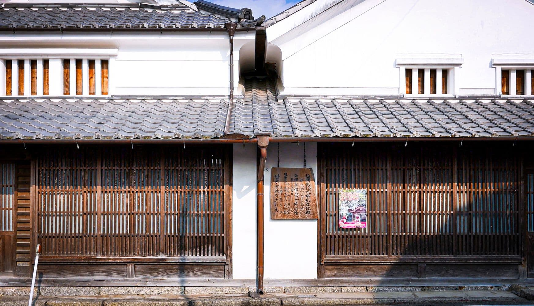 秋月は、全国でわずか126ヶ所しかない「重要伝統的建造物群保存地区」の1つに指定されています。特にその特徴は、町のほぼ全体が指定範囲となっている点です。町割りや屋敷割り、道路網や水路網、城館跡や武家屋敷、町屋の風景が、周囲の自然景観や田園景観と美しく調和しています。こうした歴史的な風情が今も大切に保存されており、訪れる人々にその魅力を感じさせてくれます。